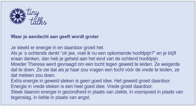De korte TinyTalks geven allerlei informatie en goede tips die je kunt gebruiken om je leven hier en nu te verbeteren.